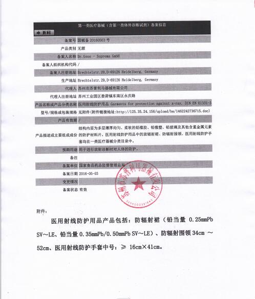 蘇州市蘇普利馬器械有限公司是專業(yè)從事醫(yī)用X射線防護(hù)系列用品、裝置、代理德國Dr.Goos-Suprema Gmbh.顧斯博士-蘇普利馬有限公司生產(chǎn)的原裝進(jìn)口鉛衣及醫(yī)用觀片燈的生產(chǎn)銷售企業(yè).生產(chǎn)的X射線防護(hù)圍裙均來自美國SHIELDING公司的最新型超薄型防護(hù)材料,,具有防護(hù)性能可靠、穿戴舒適、輕便柔軟、操作自如等諸多優(yōu)點(diǎn).產(chǎn)品均通過相關(guān)X射線檢測(cè)機(jī)構(gòu)的檢測(cè),達(dá)到產(chǎn)品標(biāo)準(zhǔn)的要求.X射線醫(yī)用膠片觀察燈。是采用全LFD燈光技術(shù)。具有重量輕,光源均勻,亮度高,無頻閃,不變型,使用壽命長等特點(diǎn)。均取得了生產(chǎn)許可及醫(yī)查看更多>>